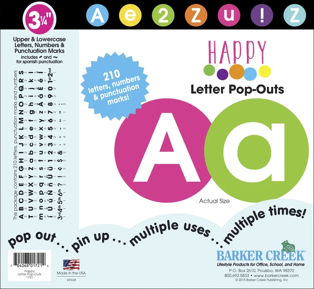 | Description | Happy Circle Letter Pop-Outs |
