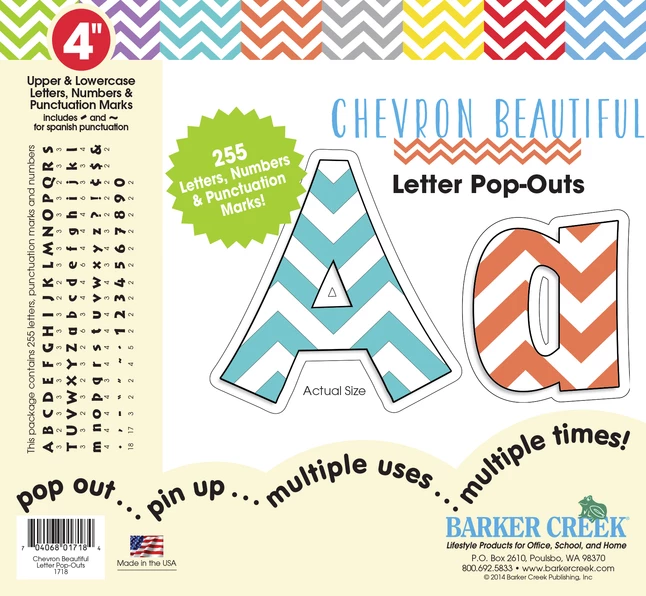 Barker Creek Letter Pop-Outs, 4 Inch, Beautiful Chevrons, Set Of 255