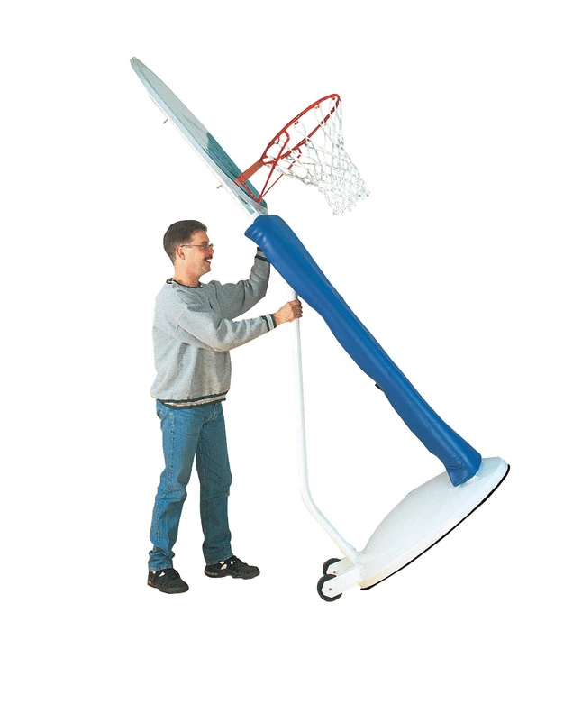 Bison Playtime Standard with built-in non-marring wheels features steel base and white powder-coated, heavy, tubular steel frame for durability. Standard is adjustable in 6 in increments from 6-1/2 ft to official 8 ft height. Official sized standard has 5/8 in steel rim mounted on 48 W x 36 H inch molded plastic backboard for stability and includes a kid-safe padding. Standard is ideal for more controlled after-school, physical education classes or shooting practice.