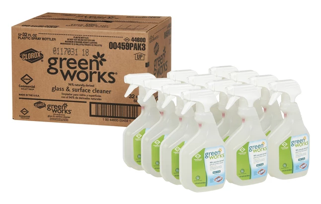 Clorox Green Works Natural Glass and Surface Cleaner cuts through filmy residue for a streak-free shine with a 98 percent naturally derived and ammonia-free formula recognized by the EPA’s Design for the Environment (DFE) program. Use on multiple surfaces in bathrooms and kitchens. All-natural, eco-friendly, cleaner combines natural ingredients and a cleaning surfactant for optimal coverage and performance. 32 ounces. Pack of 12. This item is Eco Friendly.