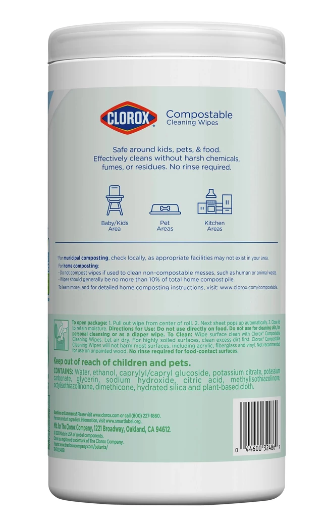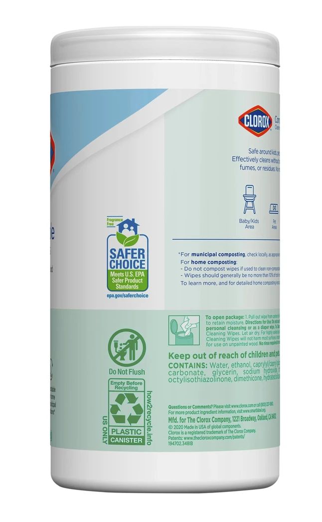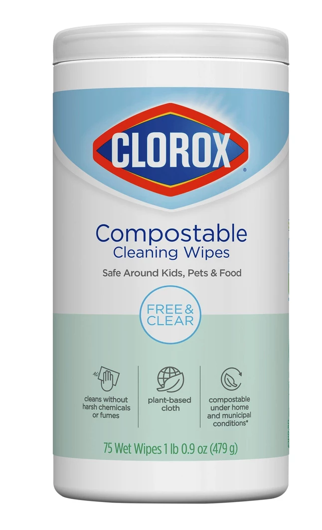 Clorox Free & Clear Compostable Cleaning Wipes, 75 Count