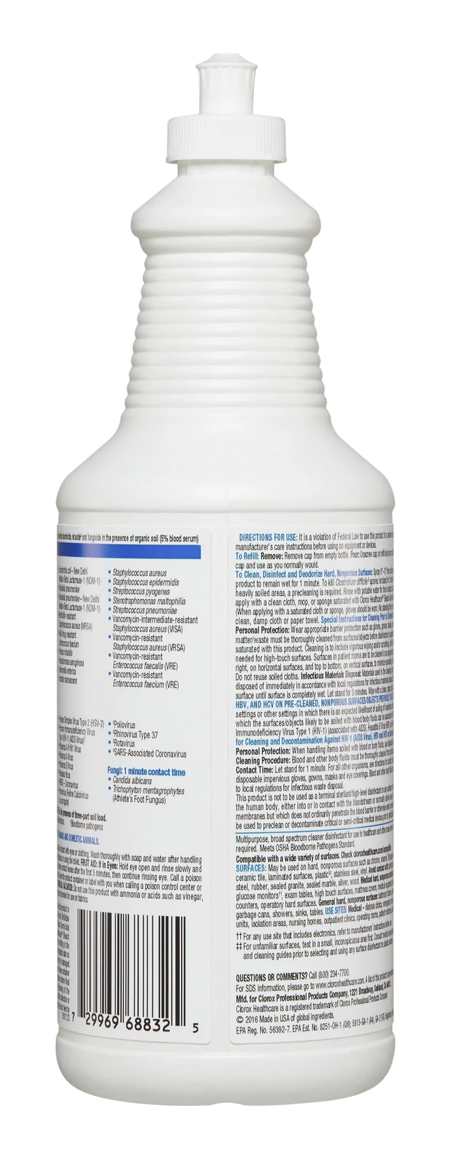 - Features an anticorrosion agent and is formulated for broad surface compatibility with healthcare surfaces including stainless steel, glass, plastic, glazed ceramic, and laminated surfaces