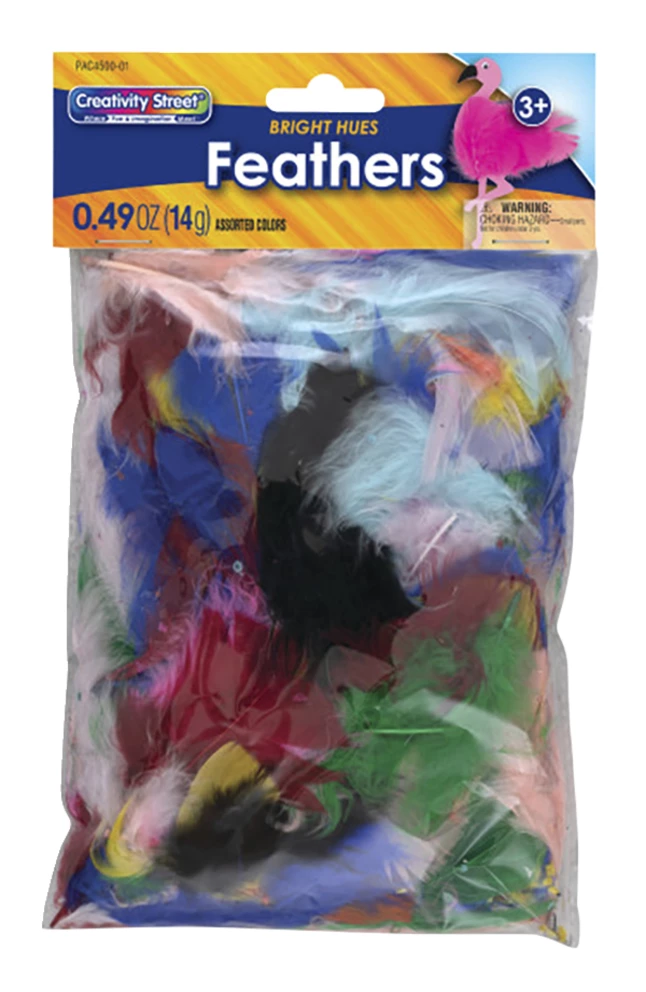 - Value pack of feathers are excellent for school projects, holiday decor crafts, and more for all ages 3 and up