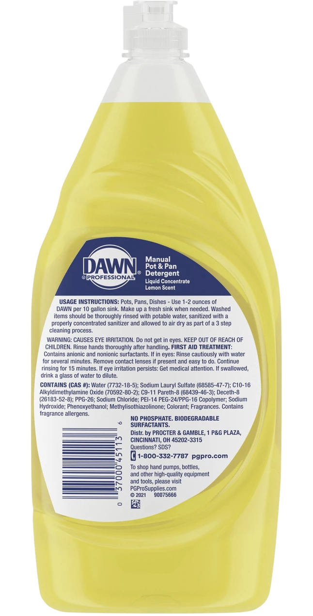 Dawn Manual Pot And Pan Dishwashing Liquid, Lemon, 38 Ounces, Yellow