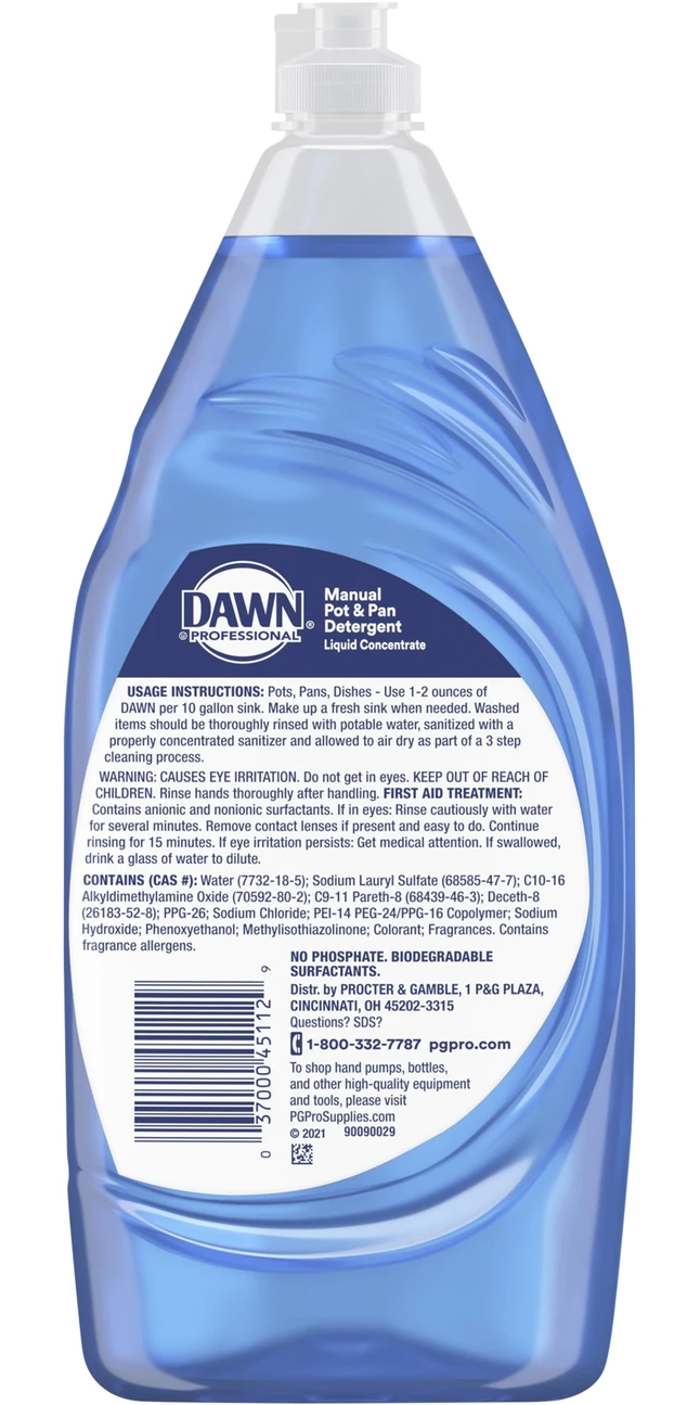 Dawn Dishwashing Liquid offers more grease-cutting ingredients in this improved formula. Longer-lasting suds reduce sink changeover while manually washing pots and pans. High-surfactant formula seeks out greasy soil, cuts through it, surrounds the removed soil and lifts it out of the way.