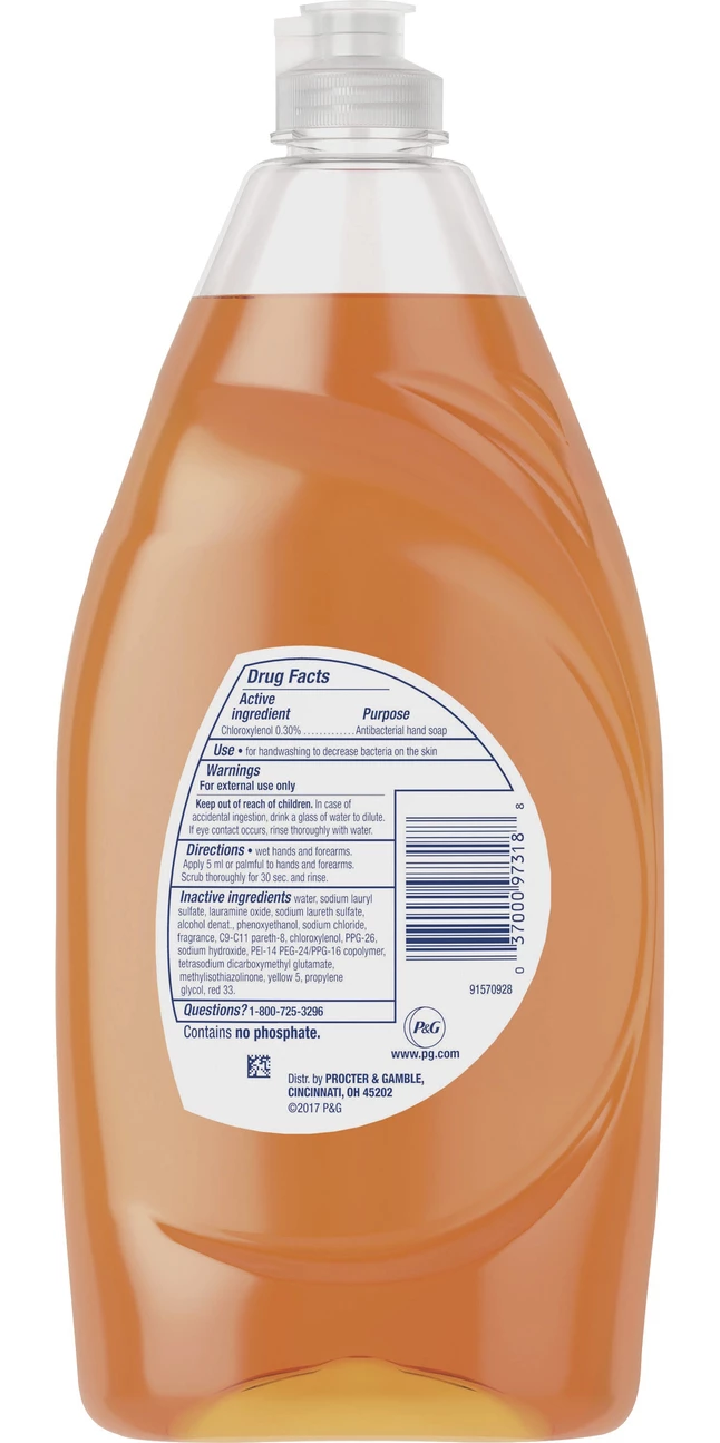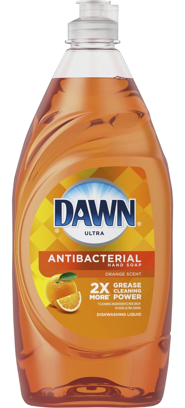 Ultra-dishwashing soap provides two times more grease-cleaning power per drop to let you get through more dishes using less for cost-efficient cleaning performance. Antibacterial formula helps fight germs on your hands to double as a hand soap. Advanced grease-fighting ingredients suspend grease and grime to wash them away completely without leaving behind any residue or streaks. Plus, its citrus scent delivers the energetic aroma of freshly sliced oranges to delight your senses with every wash.