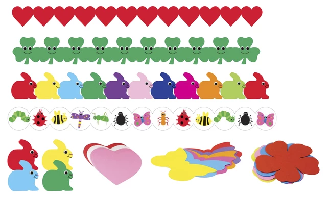 Perfect for Spring, these classroom decoratives by Hygloss make decorating a classroom a breeze. These decorative items can easily be stuck on different surfaces and they can be taken off just as easily. Teachers can also use accents to give as rewards to children for achievements. Classroom Pack includes a total of 188 pieces.