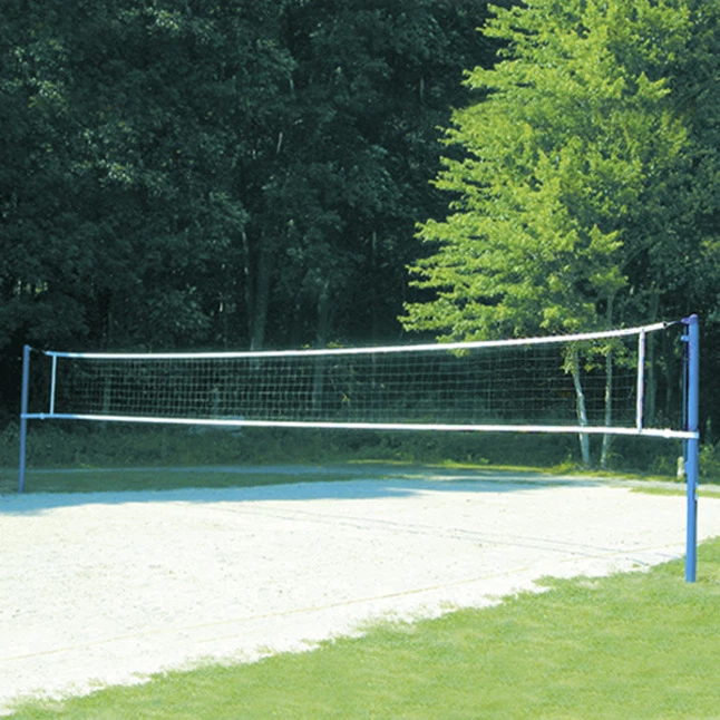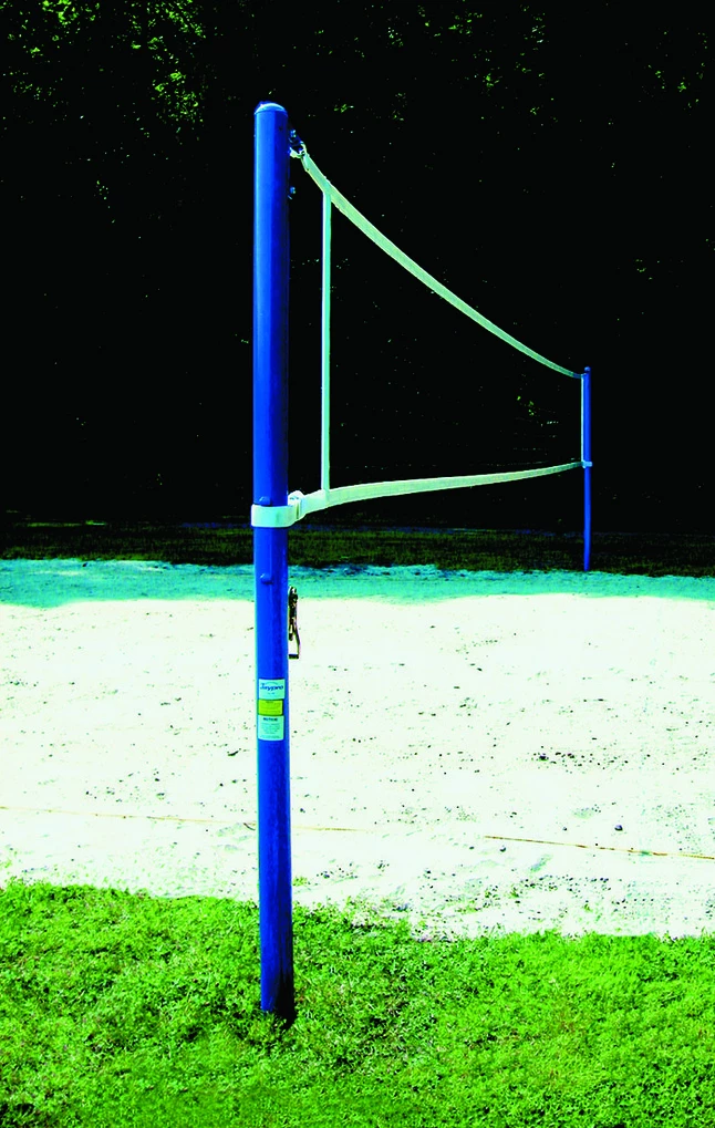 Jaypro Competition Outdoor Volleyball System is ideal for outdoor recreational, sand or grass volleyball. System featuring 3-1/2 inches round galvanized steel tubing uprights that are designed for years of use. Includes fixed height strap roller bearings for the uprights used in men and women competition net heights. The overall system contains two uprights, ratchet system and two 36 inch aluminum ground sleeves with cast aluminum top caps (used for semi-permanent installation). Net sold separately – search for item 010976.