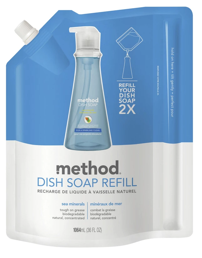 Method Dish Soap Refill, 36 Ounces, Sea Minerals Scent, Case Of 6