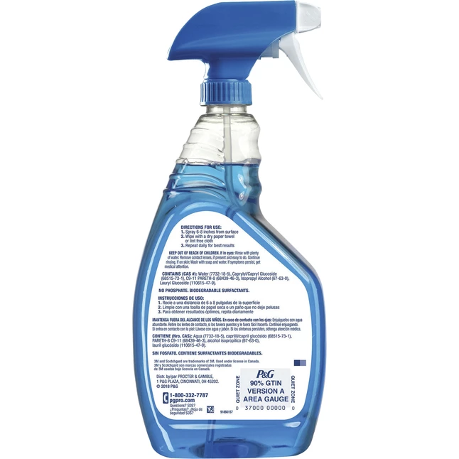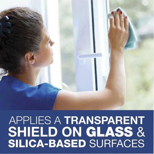 Glass and multisurface cleaner features Scotchgard technology to apply a transparent shield on your glass and hard surfaces. After continued use, the transparent shield protects your surface from fingerprints, dirt and even permanent marker to save time and labor. Quick-drying formula makes cleaning easy to provide a streak-free sparkle.