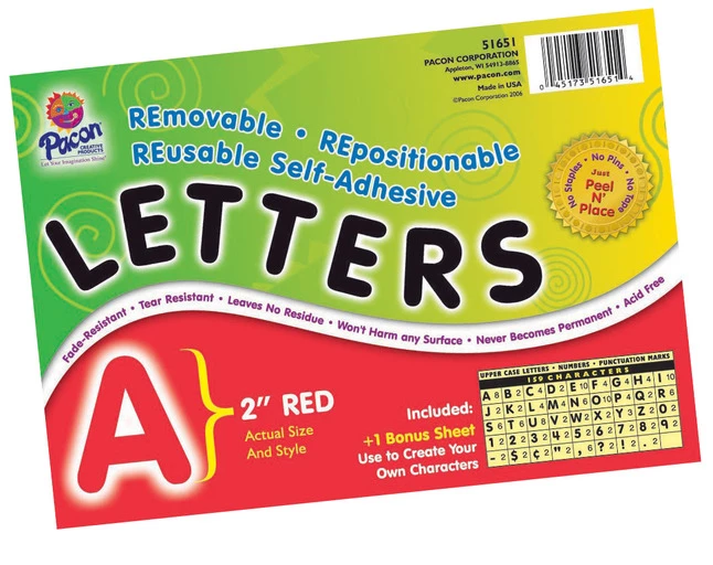 Pacon Self-Adhesive Letters, White, Classic Font, 1 And 2 Inches, 276 Pieces