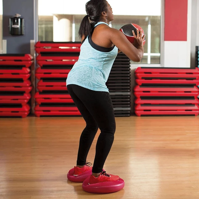 - Balance difficulty level can be adjusted by varying the level of air pumped into the disc