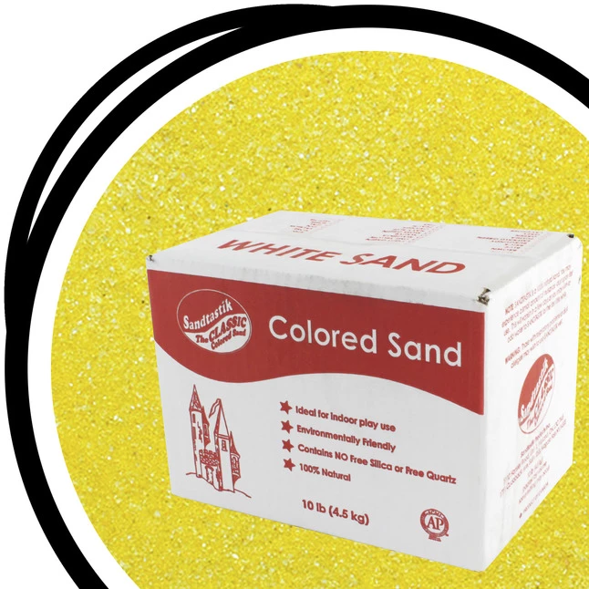 Sandtastik offers an inspiring spectrum of classic bright and light colors to accessories all craft, decor and professional endeavours. Ideal for card making, texturing art, model scenery, jewelry, sand and sensory tables, sand art and more. Sold as a 10 pound box of yellow sand.