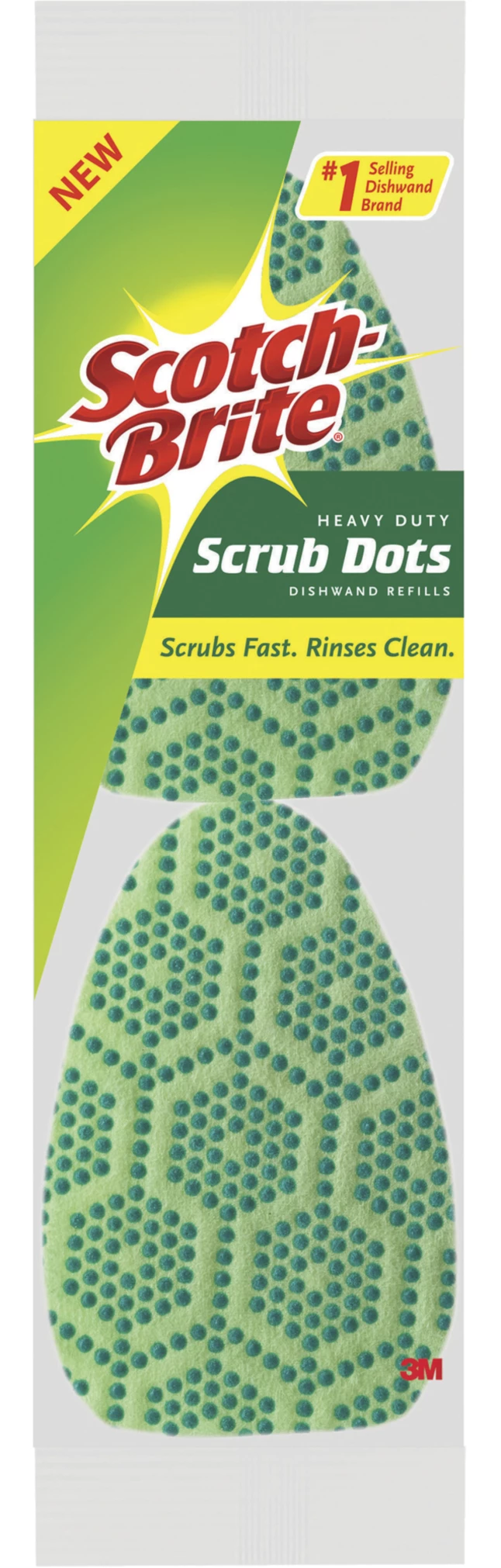 Heavy-duty refill for Scotch-Brite Scrub Dots Dishwand features innovate Scotch-Brite Scrub Dots to help you power through the toughest messes without trapping food. Eliminate the toughest baked-on messes with a scrub sponge that scrubs fast and stays clean. Scrub dots cut through messes and rinse clean. Even eggs and cheese won’t stick. Fill up the dishwand (sold separately) with your favorite dish soap and effortlessly wipe away grease and grime. Thanks to the teardrop shape and scouring pad, you can get into all the corners, nooks and crannies. The scrubbing-head refills are easy to replace.