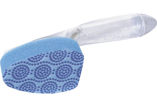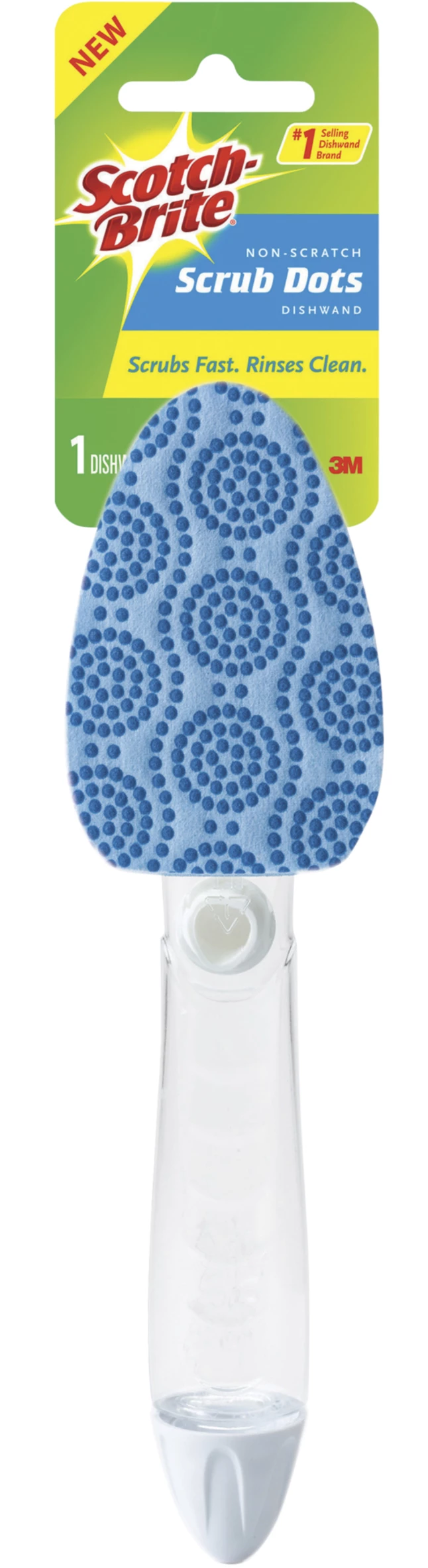 Scotch-Brite Non-Scratch Scrub Dots Scrub Sponge features innovative Scotch-Brite Scrub Dots to help you power through the toughest messes without trapping food. Eliminate the toughest baked-on messes with a scrub sponge that scrubs fast and stays clean. Scrub dots cut through messes and rinse clean. Even eggs and cheese won’t stick. Fill up the dishwand with your favorite dish soap and effortlessly wipe away grease and grime. Thanks to the teardrop shape and scouring pad, you can get into all the corners, nooks and crannies. The scrubbing-head refills are easy to replace.