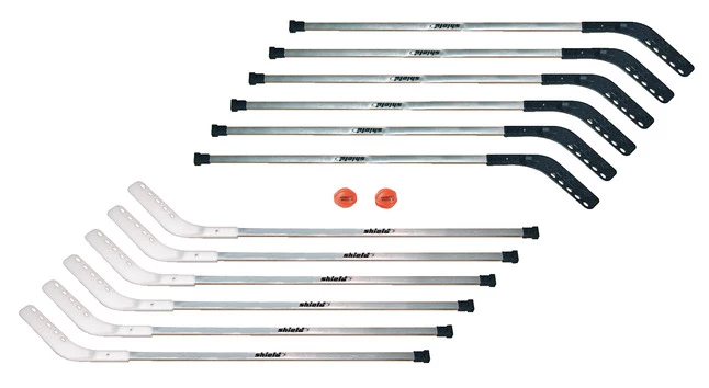 Shield Aluminator Outdoor Replacement Floor Hockey Stick measuring 50 Inches comes with a white outdoor blade that wears well on concrete and asphalt, but that will scratch floors. Its patented convex aluminum shaft with flared safety butt-end keeps the stick from flying out of the players hands. Ideal for grades 9 -12. Sold individually.