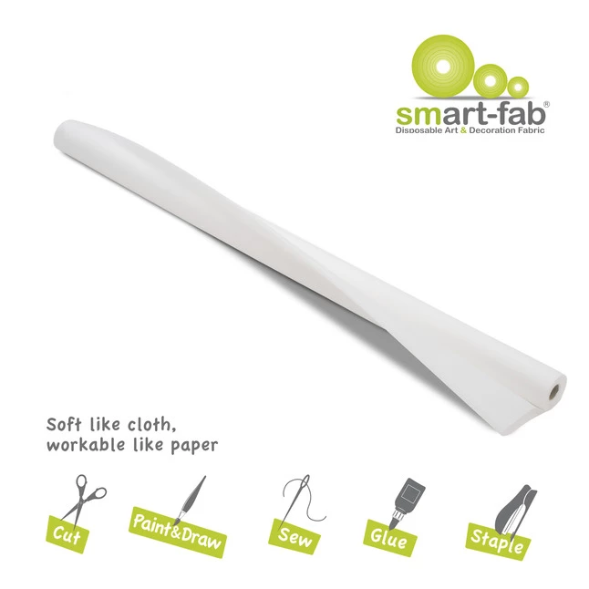 Smart-Fab Non-Woven Fabric Roll measuring 48 in x 40 ft in white is an innovative artistic and educational medium. It’s bold, brilliant colors are in the material itself, so they won’t fade and look great from either side. Soft and pliable yet strong and durable, smart-fab won’t rip, fray or wear out, yet it’s easy to cut, fold, twist, crimp, ruffle and glue. The cloth-like texture makes it pleasant to handle, yet firm enough to be used in 3-D creations and it is great for outdoor use. It is water and wear resistant but can be easily colored with paints, crayons, markers and all popular art media. Roll is also convenient to store, supplied in rolls that fit standard paper roll racks.